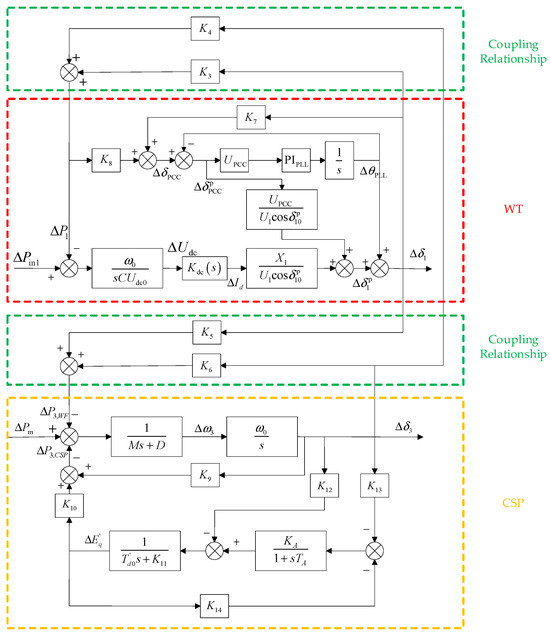 Up to now, we have constructed a fourth-order small-signal model for the CSP unit, which includes a third-order model of the synchronous generator and a first-order model of the excitation system.