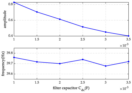 Figure 13. The effect of the DC-link capacitance Cdc of the wind farm on oscillation.