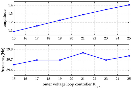 Figure 14. The effect of the voltage outer-loop controller parameter Kp,v of the wind farm on oscillation.