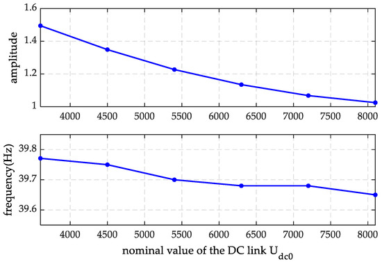 Figure 15. The effect of the initial DC-link voltage Udc0 of the wind farm on oscillation.