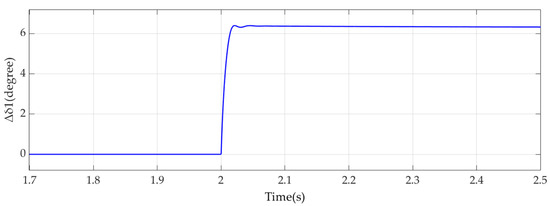 Figure 8. Phase angle of the wind farm output voltage angle when the power increase is set to 1%.