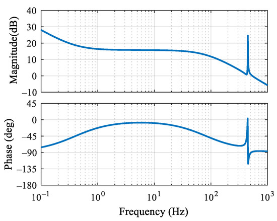 The unified dual PIR controllers for the xy plane are shown in Figure 3. The parameter design for the PIR controller is provided in [39], so it is not discussed here. Then, the open-loop Bode diagram of the harmonic current loop based on traditional PIR controllers is illustrated in Figure 4. Clearly, the current loop has a low phase margin at the resonant frequency, which adversely affects the harmonic suppression performance and stability of the system. This issue arises from the presence of digital delay. This delay reduces the system’s phase margin, thereby compromising its stability.