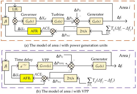 where ΔPVPP is the amount of change in VPP response power, ΔUci is the AFR control signal; TVPP is the time constant (typically in the millisecond domain due to instantaneous response requirements), while τ quantifies the time delay of VPP.