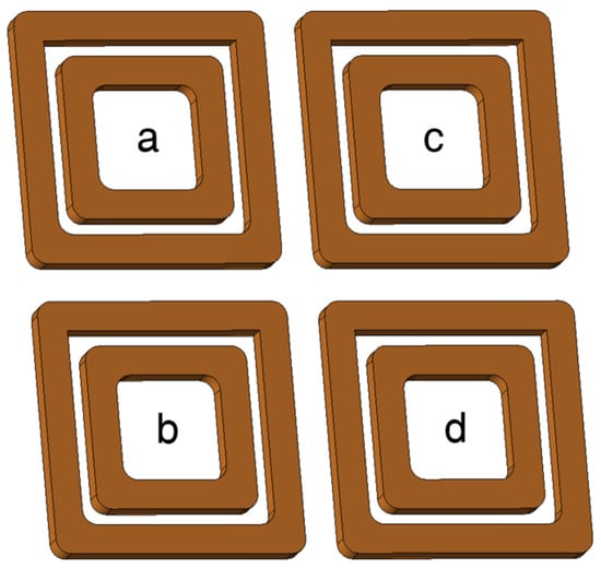 2 × 2 concentric coil windings (a–d are for coil numbering).
