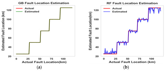 Fault location estimation is performed by using the regression GB model. The general function used to assess the performance of the regression model to optimize the location estimation error is calculated by using the mean square error (MSE), mean absolute error (MAE), and as follows: