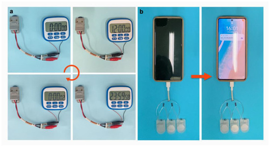 Assembled zinc ion batteries for (a) electronic timers and (b) mobile phones.