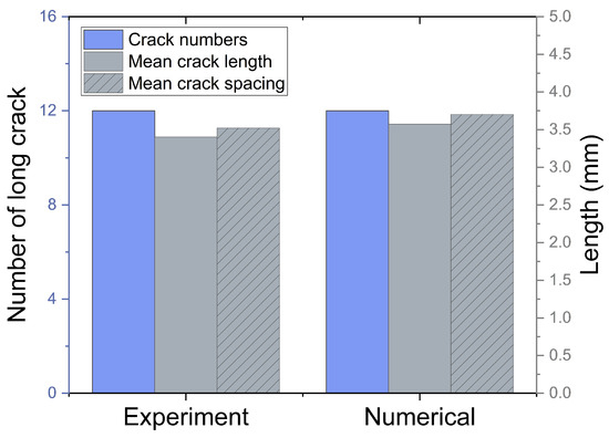 A comparison of the numerical results and experimental results in crack numbers, crack length, and crack spacing.