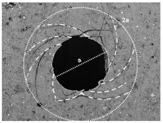 - Meier, T.; Rybacki, E.; Reinicke, A.; Dresen, G. Influence of borehole diameter on the formation of borehole breakouts in black shale. Int. J. Rock Mech. Min. Sci. 2013, 62, 74–85. [Google Scholar] [CrossRef]