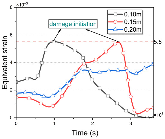 where and are material parameters, is the initial damage strain, and represents the historical maximum value of equivalent strain: