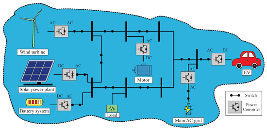 Over the past decades, significant changes have occurred in how humanity generates and consumes energy. While the transition from fossil fuels to renewable energy sources (RESs) has not progressed as rapidly as some researchers and energy experts predicted, the global energy matrix is steadily shifting. Increasing efforts are being made to promote RES adoption, aiming for cleaner energy generation and mitigating climate change [1,2]. In this transition, microgrids and RESs play a crucial role, offering mutual benefits such as enhanced energy independence, improved reliability, reduced carbon footprint, and greater system flexibility [3,4].