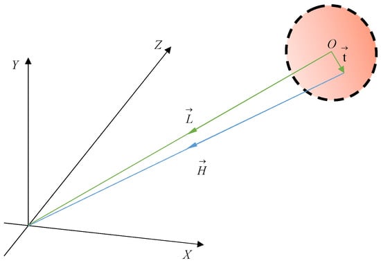 Considering the distribution of the solar energy flux density, the sun’s cone angle and its position at a specific time cannot be ignored. The other incident rays are represented as a vector offset from the main incident ray , as illustrated in Figure 3. For any nonparallel ray within the light cone, its vector is given by: