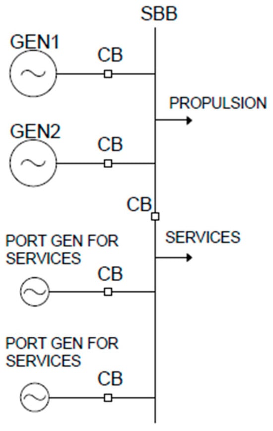 As expected, the MTBF value is very similar to the 1997 h value of the synchronous generator alone. This is not a problem considering the very stringent maintenance protocols. Within the two shipboard power plants, as mentioned above, there will be a protocol based on redundancy. Usually, the redundancy is obtained with three generators for each independent power plant. This definitely raises the MTBF value and allows for continuity of generation when one or two of the three generators are under maintenance. Figure 10 reports the presence of three synchronous generators for each power plant, as is generally the case for cruise ships.