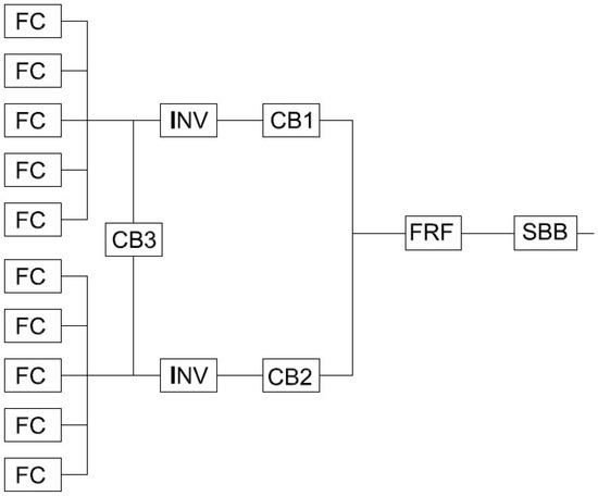 It is important to evaluate the complete reliability of the system from the stacks up to the 11kV busbar from which the different loads branch off. Figure 12 shows instead the scheme used for the RBD method. The symbol “FRF” refers to the risk of fire-related failure.