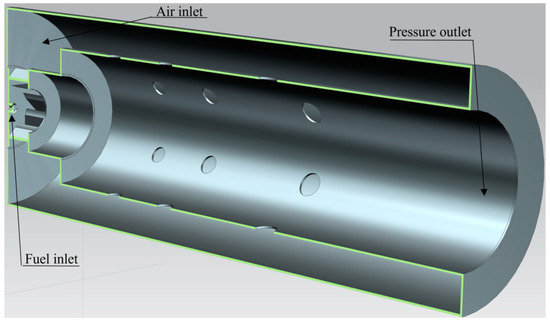 To ensure consistency between experimental and computational studies, the boundary conditions were maintained as shown in Table 2. Six different cases were tested, varying the air inlet mass flow rate, fuel inlet mass flow rate, and air inlet temperature.