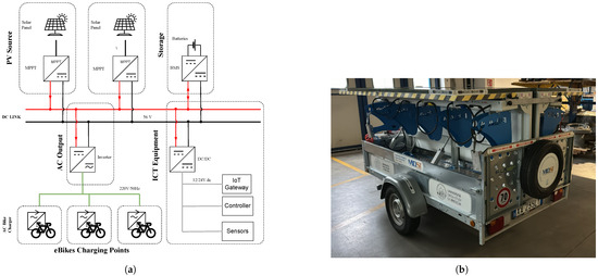 - Astolfi, D.; Bellagente, P.; Dello Iacono, S.; Flammini, A.; Malighetti, P.; Pasetti, M. Design and Pilot Tests of a Transportable Off-Grid Charging Station for E-Bikes Powered by Renewables. In Proceedings of the 2024 IEEE International Humanitarian Technologies Conference (IHTC), Bari, Italy, 27–30 November 2024. [Google Scholar]