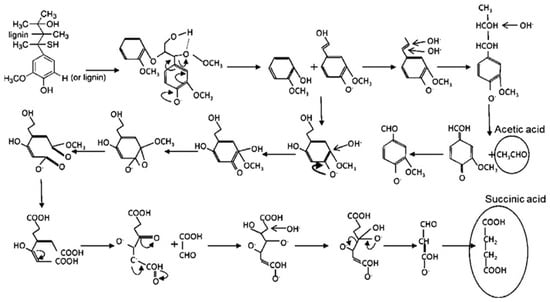 - Hirano, Y.; Izawa, A.; Hosoya, T.; Miyafuji, H. Degradation mechanism of a lignin model compound during alkaline aerobic oxidation: Formation of the vanillin precursor from the β-O-4 middle unit of softwood lignin. React. Chem. Eng. 2022, 7, 1603–1616. [Google Scholar] [CrossRef]