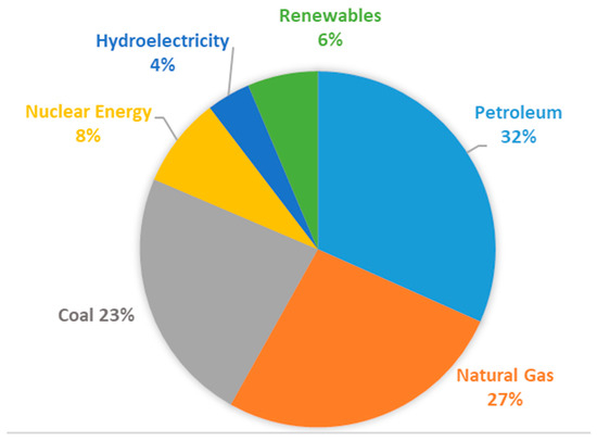 Since the second half of the 18th century, developments in nearly all aspects of social and economic life resulting from the Industrial Revolution have increased dependency on energy sources. Undoubtedly, energy production, provision, and utilization have become one of the foremost needs, particularly in both developed and developing countries. In contemporary society, hydrocarbons, specifically petroleum (oil) and natural gas, are among the most essential energy sources, fulfilling indispensable roles in various sectors, including industry, transportation, residential heating, and lighting. Moreover, the continuous development and supply of oil and natural gas resources are crucial for ensuring national energy stability and supporting the sustainable progress of society [1]. In particular, petroleum operations have played a crucial role in global industrial activities and world economy [2,3,4,5], serving as a primary source of energy for the world. According to 2023 data, petroleum, having the largest share in the primary energy requirement in the world, meets 32% of the world’s energy consumption and 27% of natural gas (Figure 1) [6]. However, the industry is now facing growing challenges posed by climate change, including the increasing frequency of extreme weather events, rising sea levels, and changing environmental conditions [7]. Economic growth naturally leads to higher energy demand and a rise in environmental pollution [8].