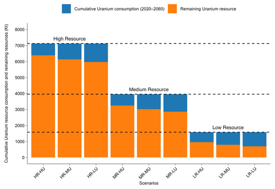 - Low Uranium Resource Utilization Scenario (LU): Presumes that the uranium resource utilization efficiency remains stagnant at current levels until 2060.