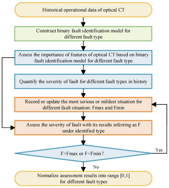 In recent years, direct current (DC) transmission systems have become an important means of cross-regional power transmission due to their economic efficiency and control flexibility at high voltage levels, long distances, and large power capacities [1,2]. DC current transformers (DCCTs) are crucial primary devices in DC transmission systems, providing reliable measurement information for control protection and operational status [3]. The operational reliability of DCCTs is directly related to the safe and stable operation of DC transmission systems. Among several optional devices, optical current transformers (CT), with advantages such as strong anti-interference capability, wide bandwidth, high insulation level, compact size, and ease of installation, have been widely adopted. However, the electromagnetic environment within DC converter stations is complex [4,5], which can cause electromagnetic interference to the weak electrical systems of optical CTs, easily leading to faulty devices, thus affecting the stable operation of converter stations [6]. Moreover, given the complex physical structure and diverse types of faults in optical CTs, maintenance and inspection work pose significant challenges. There is a pressing need to develop a fault severity assessment system tailored to different types of faults, providing effective reference information for the maintenance and repair of optical CTs. By accurately identifying fault types, maintenance personnel can develop targeted repair plans, quickly locate fault locations, reduce unnecessary inspections and disassembly, and improve fault handling efficiency [7,8]. Additionally, reasonable assessments of fault severity can help optimize the allocation of maintenance resources: minor faults can be scheduled for handling during planned times, while severe faults require immediate response. This tiered management approach can more effectively utilize limited maintenance resources, reduce unnecessary emergency repairs, and lower maintenance costs.