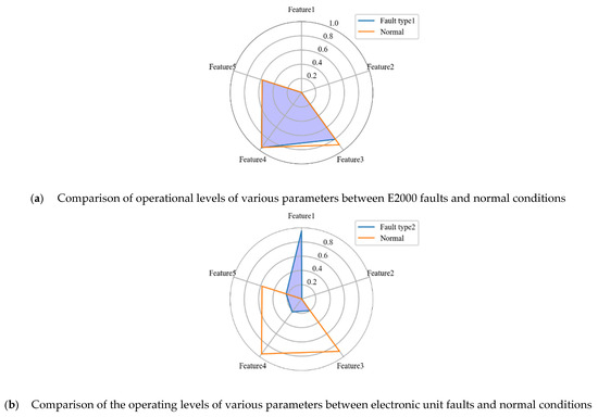 From Figure 6, it can be seen that the average operating level of different parameters under the same fault type is significantly different from that under normal conditions, and the degree of difference between the same parameter and normal conditions under different fault types is also different.
