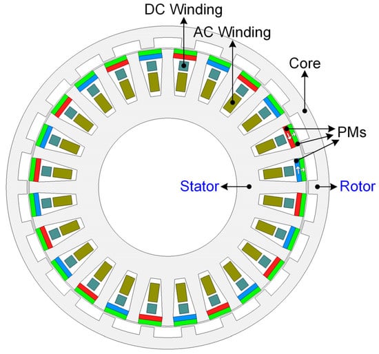 - Zhao, X.; Niu, S.; Fu, W. Design of a Novel Parallel-Hybrid-Excited Dual-PM Machine Based on Armature Harmonics Diversity for Electric Vehicle Propulsion. IEEE Trans. Ind. Electron. 2019, 66, 4209–4219. [Google Scholar] [CrossRef]
