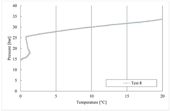 In this section, eight tests are shown and described. Each experiment comprises the formation and following dissociation of hydrates and was carried out with a binary gaseous mixture containing carbon dioxide and propane, whose concentration is indicated in Section 2.1.