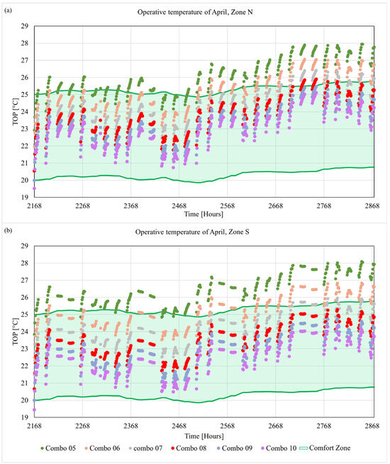 Operative temperature in April for: (a) North zone and (b) South zone.