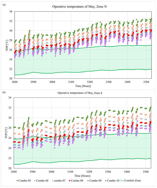 Operative temperature in May for: (a) North zone and (b) South zone.