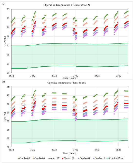 Operative temperature in June for: (a) North zone and (b) South zone.