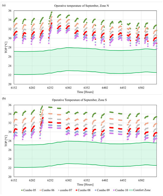 Operative temperature in September for: (a) North zone and (b) South zone.