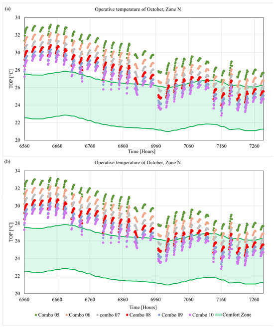 Operative temperature in October for: (a) North zone and (b) South zone.