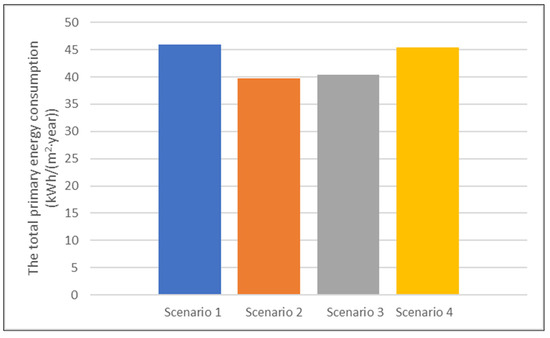 The simulation results present the total primary energy consumption for all four scenarios in compliance with BR15.