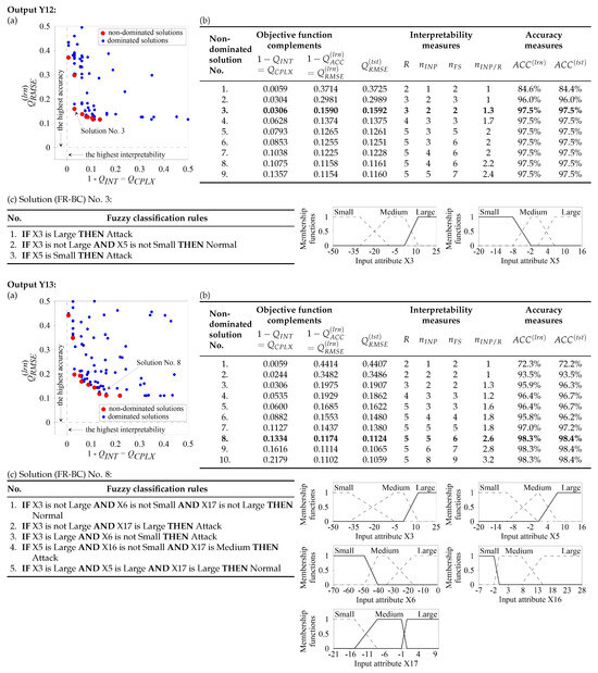 Our future research will focus on two areas. First, as far as further analysis of the FDIA data sets considered in this work is concerned, we intend to design a multiclass FR-BC with multiple outputs and associated multiple fuzzy rule bases operating on a common collection of fuzzy sets for input attributes. In this way, we expect to improve the semantics-related interpretability of generated FR-BCs. Second, as far as further development of our methodology is concerned, we intend to work on improving our original mechanism for balancing FR-BCs’ locations on the generated Pareto-front approximations (implemented in our SPEA3 method) to carry out optimization processes with more than two optimization criteria. It is one of the important directions in designing modern M-OEOAs that can effectively be used in explainable artificial intelligence systems (see, e.g., [30,31]) or interpretable machine learning systems (see, e.g., [32,33]).