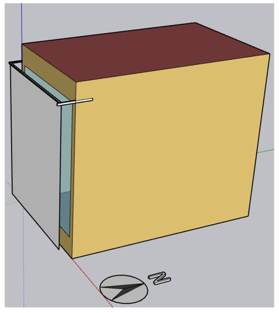 The case room in this paper is an air-conditioned room, with an open surrounding environment without any buildings or landscape obstructions. The south side of the room features a glass curtain wall, with full-sized active shading louvers installed externally. The angle of the blind slats and the distance between the louvers and the curtain wall are both adjustable. Figure 1 shows the schematic diagram of the experimental room’s exterior.