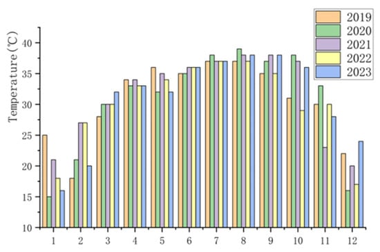 Variation of monthly maximum temperature in Zhuzhou in recent five years.