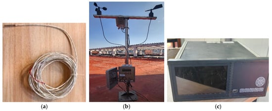 Test equipment: (a) Thermistor sensors; (b) Meteorological station; (c) Paperless recorder.
