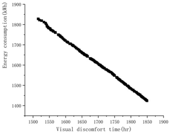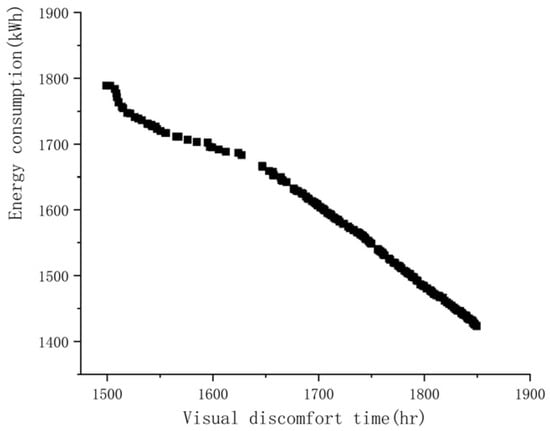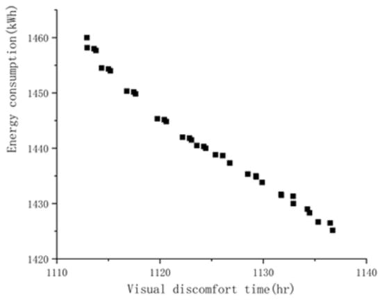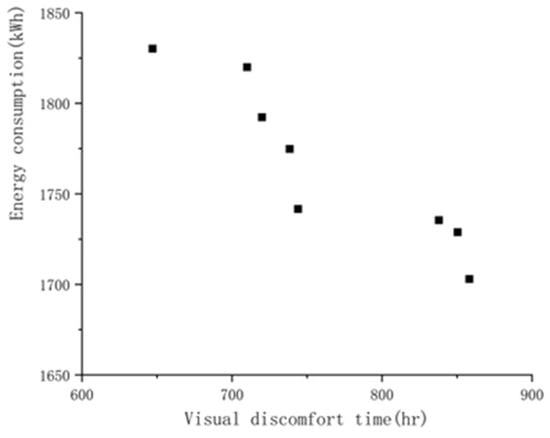 In this paper, the optimization objectives are set as the lowest building energy consumption and the lowest visual discomfort time. The objective function can be expressed as: