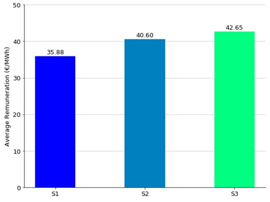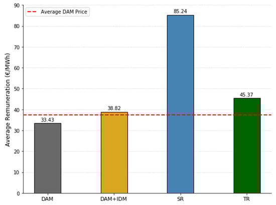 - is the vRES position at the time of the IDC, which can be higher than the bid in the DAM if the producer sold energy in the IDA or lower if the producer was a buyer in the IDA. The average remuneration (€/MWh) for the study period is calculated by dividing the total revenue across all hours by the total production for the same period.