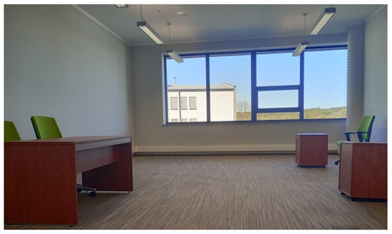 An office room (Figure 2), located on the west side of the second floor of the building, was used during the research. It is 7.95 m long, 5.80 m wide, and 3.1 m high.
