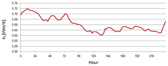 Therefore, both methods (involving AUST and Trad) were employed to compute the RHTC. In the first method, the resulting RHTC varied (Figure 11) from 5.621 W/m2K (at 8:00 on 6 November) to 5.718 W/m2K (at 21:00 on 31 October) with 5.661 W/m2K on average.