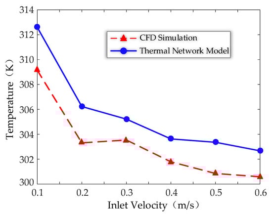 Variation of outlet oil temperature from the thermal network model with CFD under different inlet flow rates.
