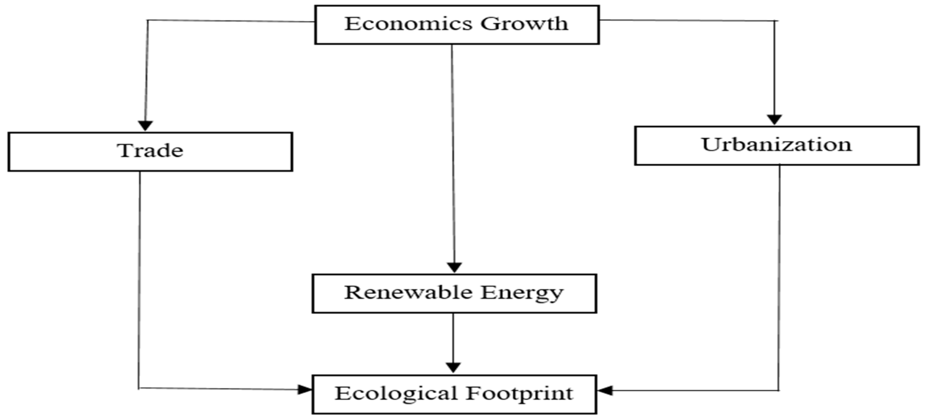 The Environmental Kuznets Curve (EKC) hypothesis posits an inverted U-shaped relationship between economic growth and environmental degradation, suggesting that environmental quality deteriorates at early development stages but improves as income levels rise. Sustainable Development Theory emphasizes the integration of economic, environmental, and social objectives. High-income countries mitigate ecological footprints through renewable energy adoption, strategic urban planning, and sustainable trade policies, aligning economic growth with de-carbonization and circular economy principles to promote long-term environmental sustainability.
