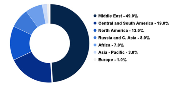 Global oil reserves in 2023, organized by continent. Source: adapted from [75].