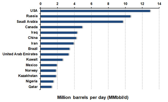 World’s biggest oil producers in 2023 per country (MMbbl/d). Source: adapted from [77].