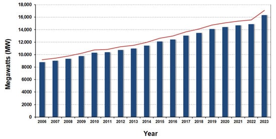 Geothermal installed capacity worldwide has continued to grow in the last decade [10]. The total installed geothermal capacity in 2023 was approximately 16,335 MW. Between 2010 and 2020, the medium cost of electricity from geothermal power projects averaged between USD 0.049 and USD 0.085 per kWh [46]. Figure 12 shows the geothermal cumulative installed capacity worldwide in 2023.