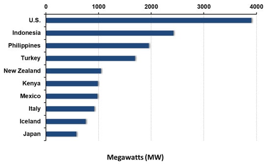 - Top 10 Geothermal Countries 2023—Power Generation Capacity. Available online: https://www.thinkgeoenergy.com/thinkgeoenergys-top-10-geothermal-countries-2023-power-generation-capacity/ (accessed on 10 November 2024).