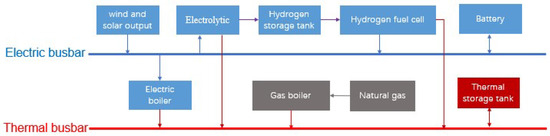 Hydrogen energy, as a clean secondary energy source, offers several advantages, including high energy density, substantial energy storage capacity, and minimal environmental impact. The integration of hydrogen energy into energy systems enhances the coupling of various energy forms, thereby significantly improving system efficiency and increasing operational flexibility [6,7,8]. Therefore, this study focuses on hydrogen-integrated energy systems as the research subject. However, during operation, uncertainties can impact the system’s stability and economic performance, driving significant interest in the development of multi-timescale optimization scheduling methods [9]. The authors of [10] proposed a multi-timescale optimization scheduling strategy aimed at minimizing integrated energy costs, significantly reducing system operating expenses while addressing the uncertainties of photovoltaic generation within integrated energy systems (IES). The authors of [11] developed a multi-timescale framework to manage the uncertainties of wind, solar, and electro-hydrogen loads, thereby enhancing the risk mitigation capabilities of IES. The authors of [12] examined the multi-timescale coordinated operation problem of electro-hydrogen energy systems, achieving coordinated optimization across multiple timescales through the construction of a Nash bargaining model, which substantially improved the system’s economic performance. While these studies have advanced the efficient utilization of energy systems and reduced operational costs, they have not sufficiently addressed the critical issue of low-carbon emissions within the system. In this regard, the paper introduces a carbon trading mechanism aimed at reducing both the operational costs of the system and its carbon emissions.