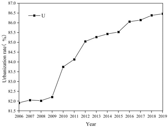 The changes in the urbanization rate of Guangzhou in recent years are shown in Figure 7, and it is evident that the urbanization rate of Guangzhou has been growing. By calculating the average growth rate from 2006 to 2009 as 0.4%, the annual growth rate of the future urbanization rate in Guangzhou was set to 0.4%.