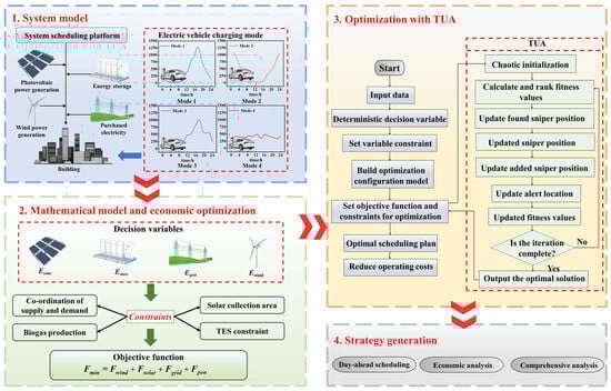 This paper presents a day-ahead scheduling model that integrates the TUA optimization algorithm and incorporates the charging flexibility of EVs, enabling an analysis of the operational strategy for the integrated energy system. The principal conclusions are as follows: