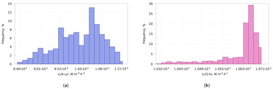 A full assessment of the actual energy quality loss is only possible when the value of the heat transfer with the environment of the measurement element is taken into account. In the context of the results presented in this paper, these losses can be significant. This is a significant limitation of the research carried out, but it provides valuable insight into the mechanism of entropy generation in industrial measurements. The average absolute values of the generated entropy , due to their reference to the average flow parameters, should be equal to the average values of the destroyed entropy rate . These values vary considerably, not only between each other but also depending on the model used. This suggests a significant lack of precision in the application of global exergetic analysis (which only considers inlet and outlet parameters). In addition, it is not possible to directly compare this method with the literature data.